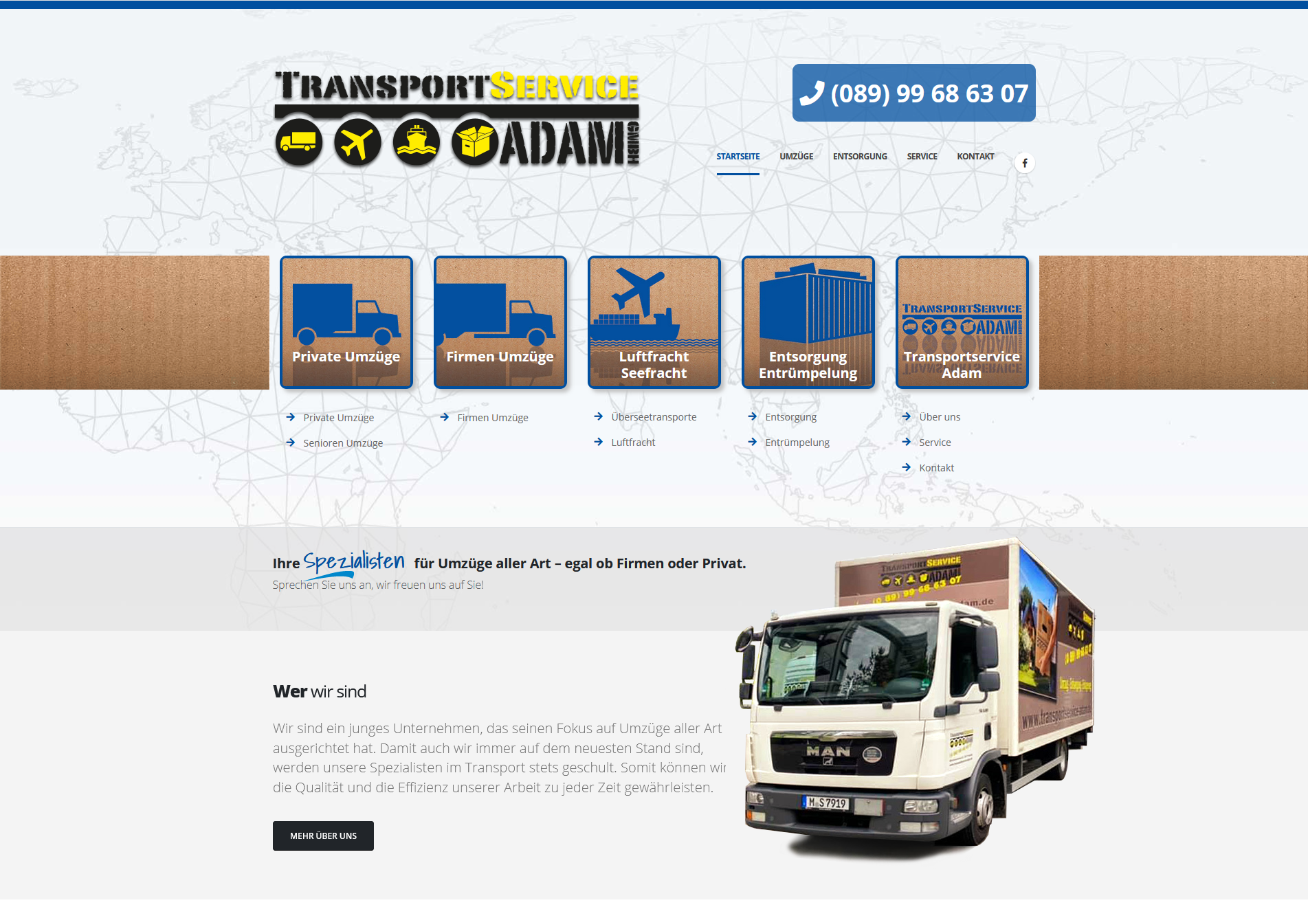 Neue Internetseite für die Transportservice Adam GmbH – Ismaning. Ihre Spezialisten für Umzüge und Transporte aller Art.